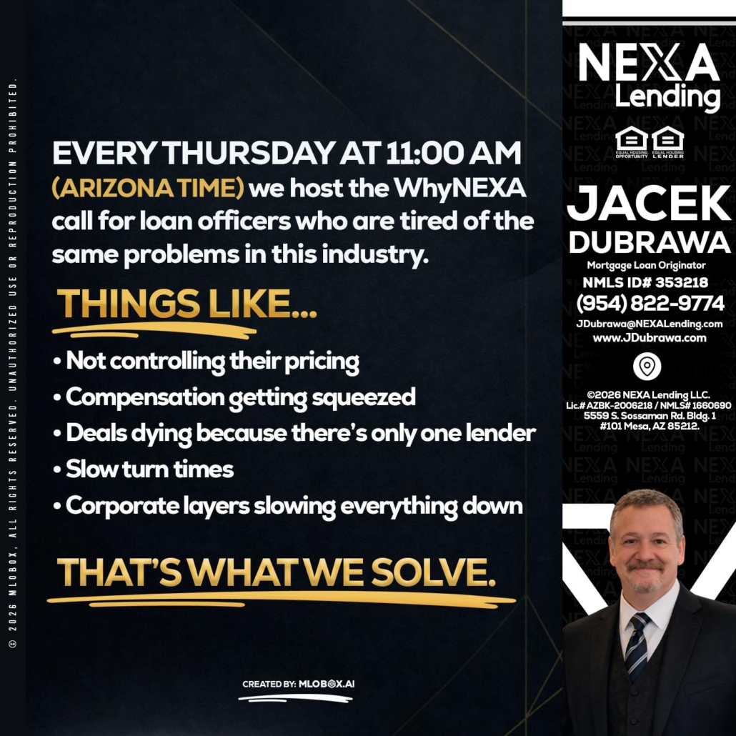 Hi, my name is Jacek Dubrawa. I’m a Loan Officer with NEXA Lending LLC., offering personalized mortgage solutions, fast customized quotes, great rates and service with integrity.