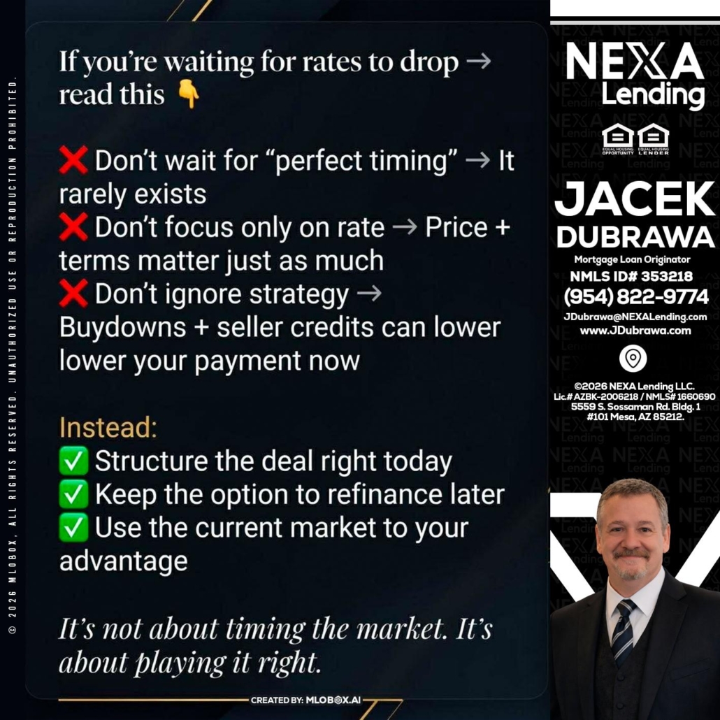 Hi, my name is Jacek Dubrawa. I’m a Loan Officer with NEXA Lending LLC., offering personalized mortgage solutions, fast customized quotes, great rates and service with integrity.