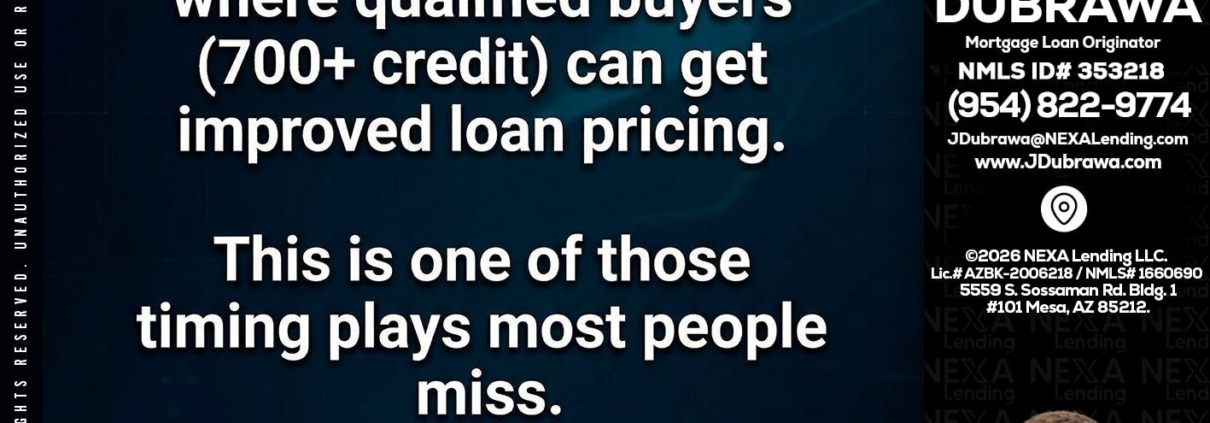 Hi, my name is Jacek Dubrawa. I’m a Loan Officer with NEXA Lending LLC., offering personalized mortgage solutions, fast customized quotes, great rates and service with integrity.