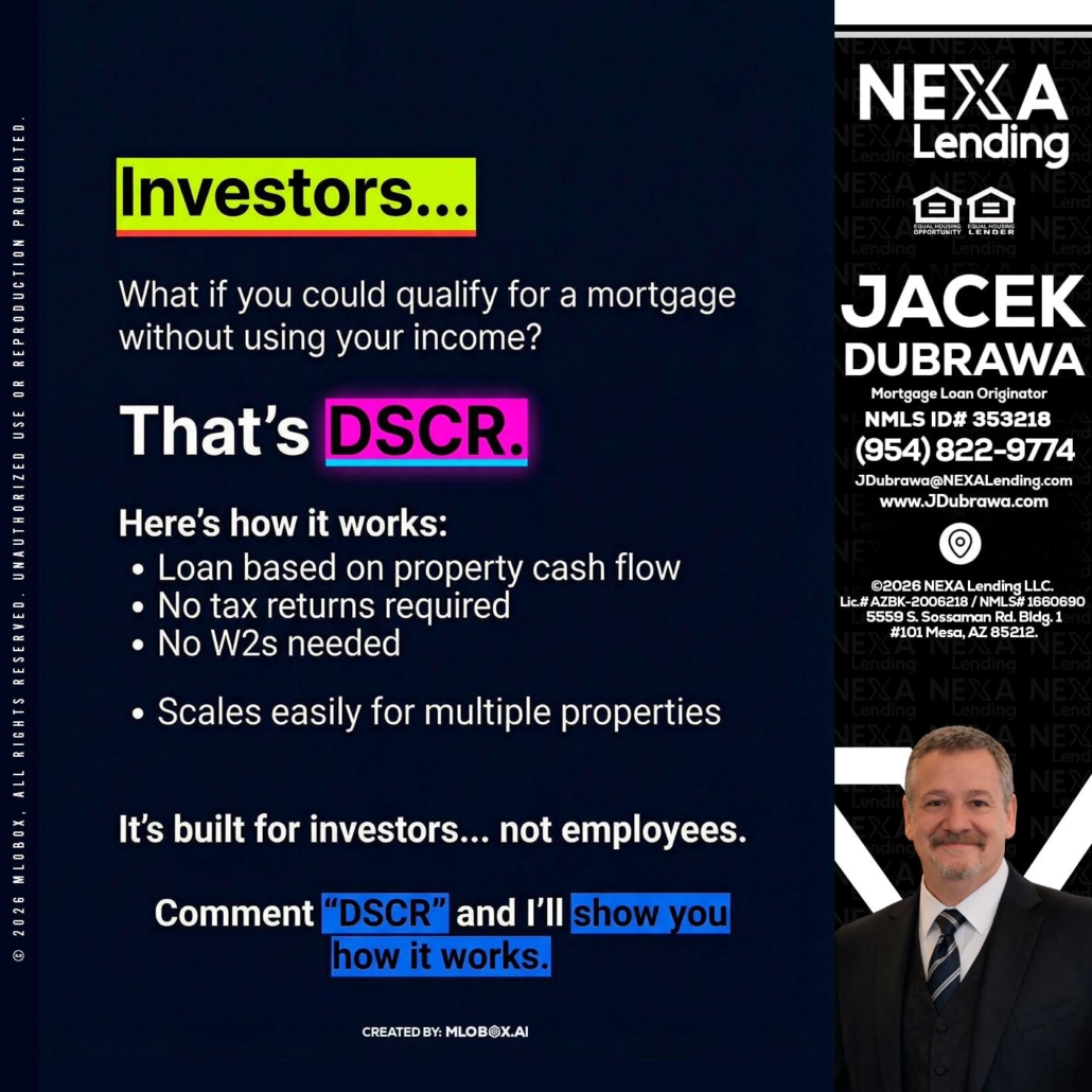 Hi, my name is Jacek Dubrawa. I’m a Loan Officer with NEXA Lending LLC., offering personalized mortgage solutions, fast customized quotes, great rates and service with integrity.