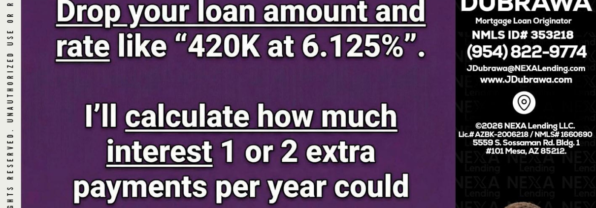 Hi, my name is Jacek Dubrawa. I’m a Loan Officer with NEXA Lending LLC., offering personalized mortgage solutions, fast customized quotes, great rates and service with integrity.