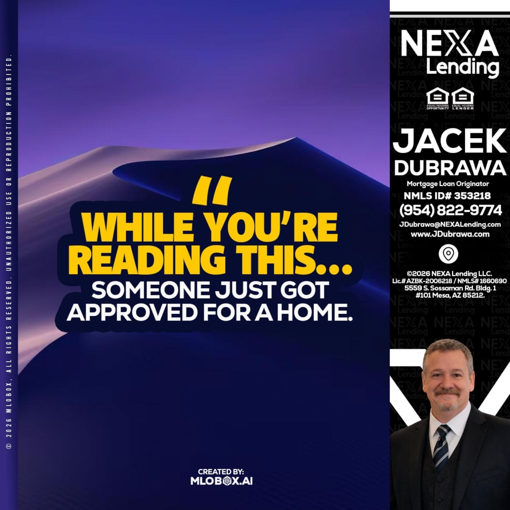 Hi, my name is Jacek Dubrawa. I’m a Loan Officer with NEXA Lending LLC., offering personalized mortgage solutions, fast customized quotes, great rates and service with integrity.
