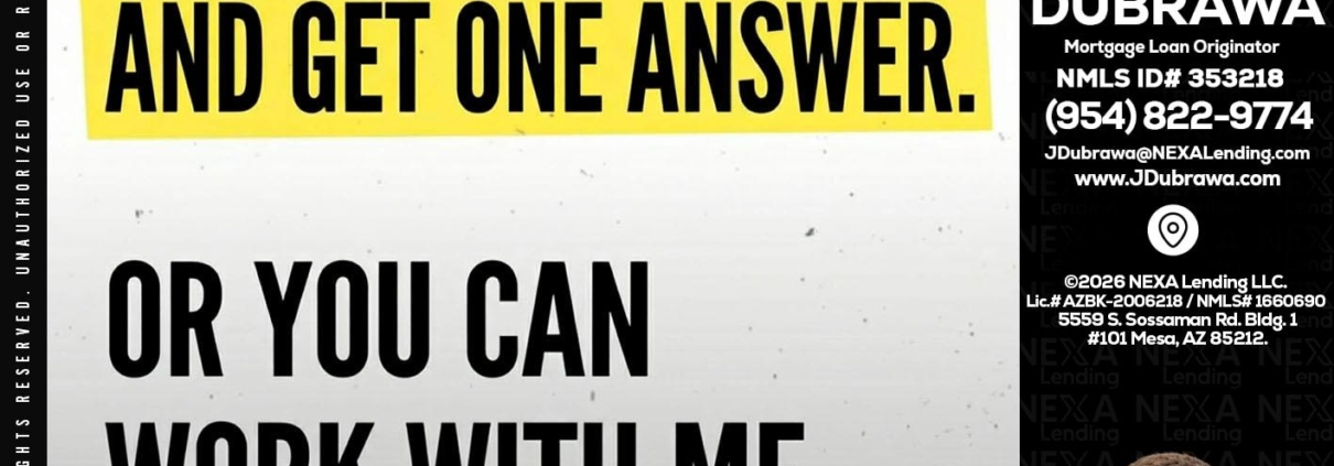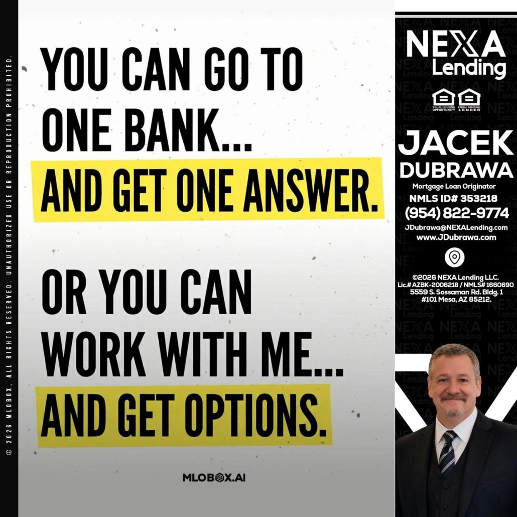 Hi, my name is Jacek Dubrawa. I’m a Loan Officer with NEXA Lending LLC., offering personalized mortgage solutions, fast customized quotes, great rates and service with integrity.